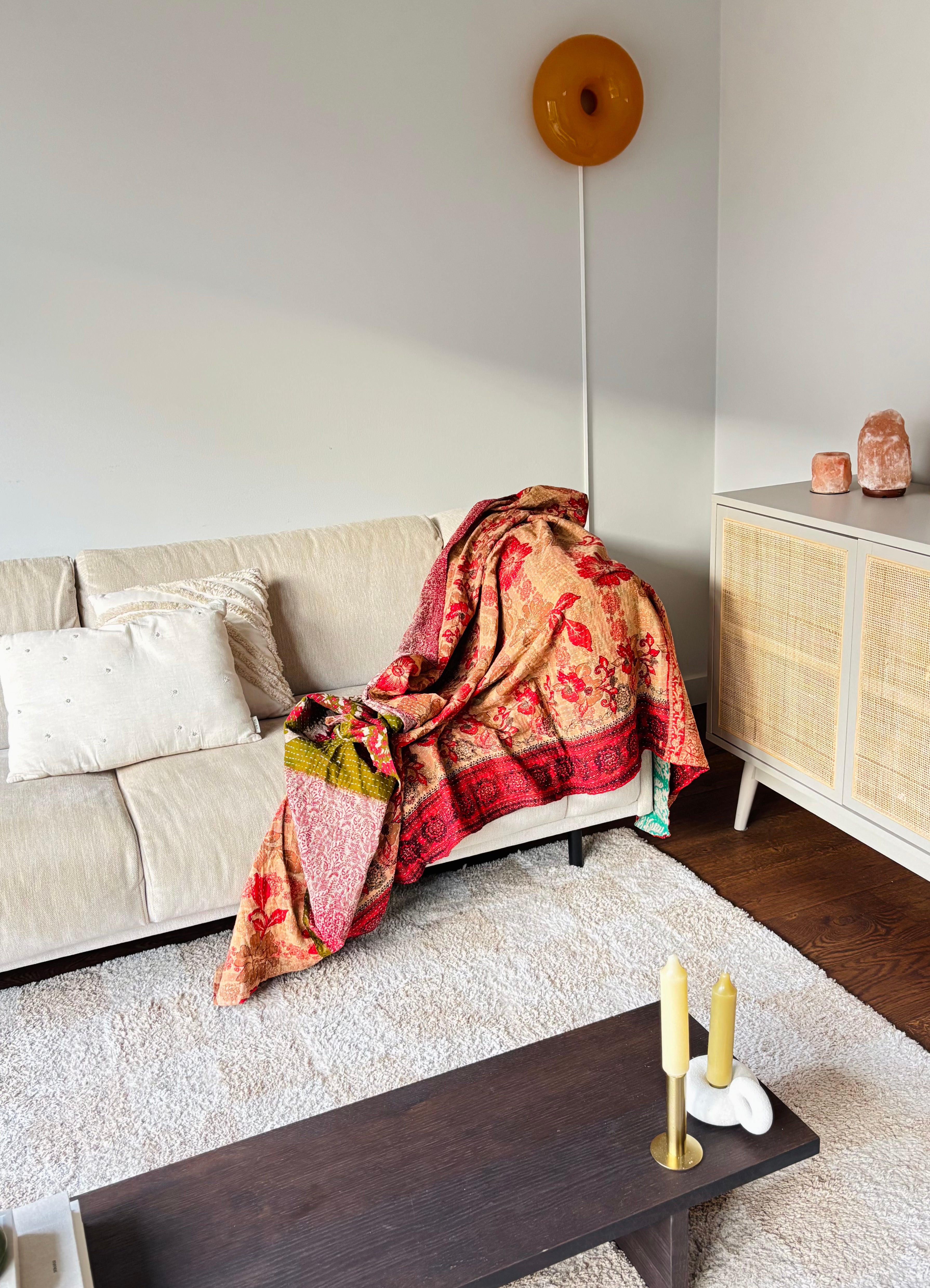 met onze kleurrijke kantha dekens & rustgevende wierook