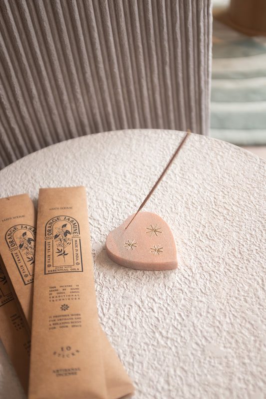 Wierookhouder Jaipuri Heart - roze gesneden marmer