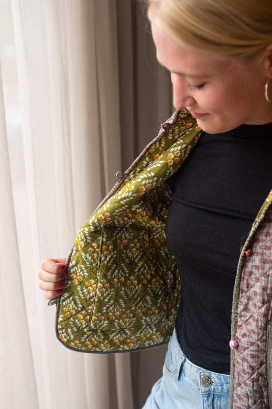 Al onze prachtige giletjes worden met liefde handgemaakt door ambachtslieden in India. Deze ambachtslieden maken gebruik van authentieke reststoffen, zoals gerecyclede sari's, en hanteren eeuwenoude traditionele methoden, waaronder blockprinting. Daarnaast worden de giletjes gemaakt onder goede werkomstandigheden en tegen een eerlijke prijs. Door deze producten aan te bieden, streven we ernaar het traditionele vakmanschap te behouden en de lokale groei van kleine ambachtelijke producenten in India te bevorderen