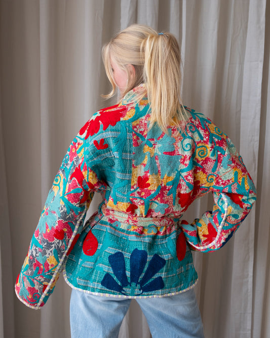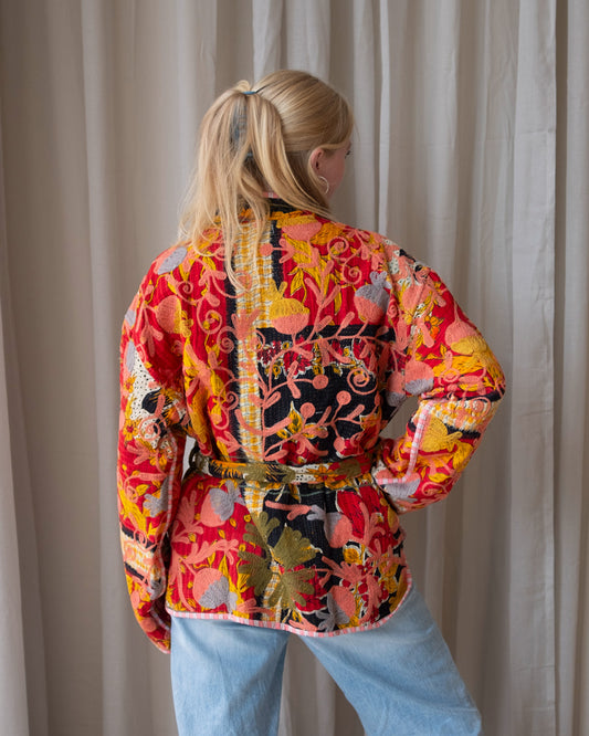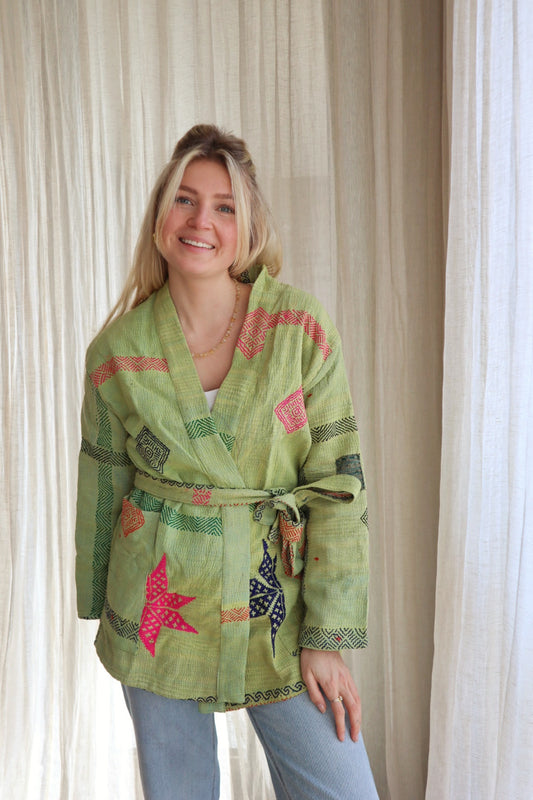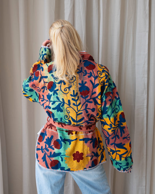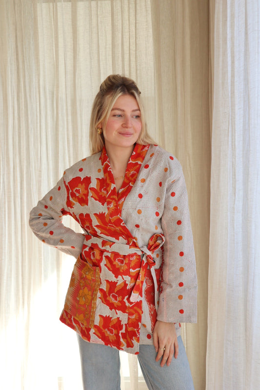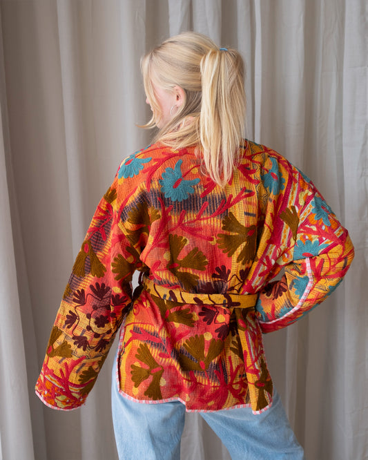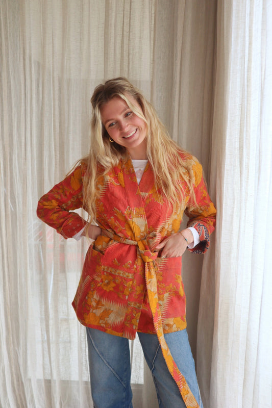 Ontdek onze prachtige collectie kimono jasjes, stuk voor stuk met een uniek verhaal. Onze bijzondere kimono jasjes zijn handgemaakt in India van gerecyclede vintage stoffen. En bestaan uit de meest kleurrijke prints, patronen en rijke borduurwerken. Ontdek hier hoe traditionele technieken, zoals blockprinting, perfect samenkomen met een eigentijds design in een kimono jasje!
