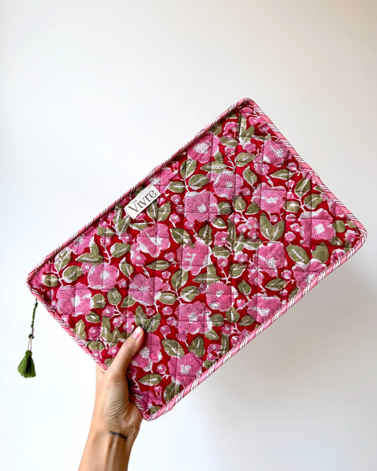 Met de Vivre-Atelier laptophoes maak je van elke dag een feestje. Onze collectie is uniek dankzij de speelse combinatie van vrolijke kleuren en bijzondere bloemenprints. Bovendien worden de laptophoezen gemaakt van vintage stoffen, waardoor elke laptophoes beperkt beschikbaar is in een specifiek design of print. Fleur je werkdag op met de vivre-Atelier laptophoes met bloemetjes!
