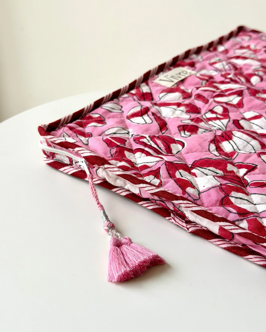 Elk ontwerp is een uniek en duurzaam kunstwerk gemaakt van gerecyclede materialen. Elke laptophoes heeft veel kleur en is bedrukt met (bloemen) patronen volgens de blokprint methode. Bovendien zijn onze laptop sleeves rechthoekig en in twee verschillende maten: 15 inch (24,5 x 33) en 16 inch (26,5 x 38). Ook zijn ze voorzien van een stevige rits.