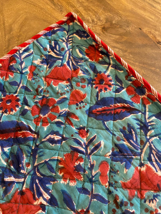 Onze laptophoezen worden met zorg en toewijding handgemaakt in India door vakmensen die de blockprint techniek beheersen. Deze traditionele methode begint met het vervaardigen van houten stempels met specifieke patronen. Vervolgens worden deze stempels met verf bedekt en op de stof gedrukt, wat resulteert in unieke patronen. Soms worden wel 4 of 5 verschillende lagen stempels over elkaar gedrukt. Elk detail en elke kleur vereist een aparte stempel en een nieuwe laag verf. Deze herhaalde stempeltechniek leidt tot prachtige prints die elk een uniek verhaal vertellen en getuigen van een diepgewortelde passie voor cultureel erfgoed.