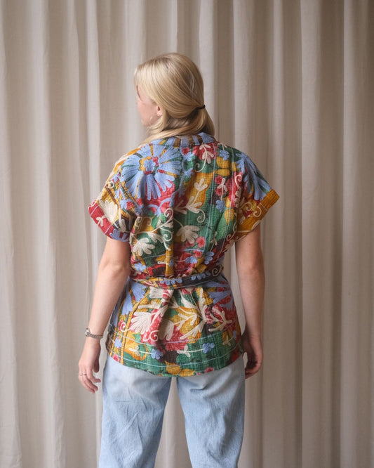 Onze suzani gilets zijn met liefde handgemaakt door ambachtslieden in India. Ze gebruiken tweedehands stoffen zoals Kantha of sari en werken met traditionele technieken zoals borduren. Het allerbelangrijkste voor ons is dat deze gilets onder goede werkomstandigheden en tegen een eerlijke prijs worden gemaakt. Met onze producten willen we ambachtslieden, families en vrouwen in India een steuntje in de rug geven.