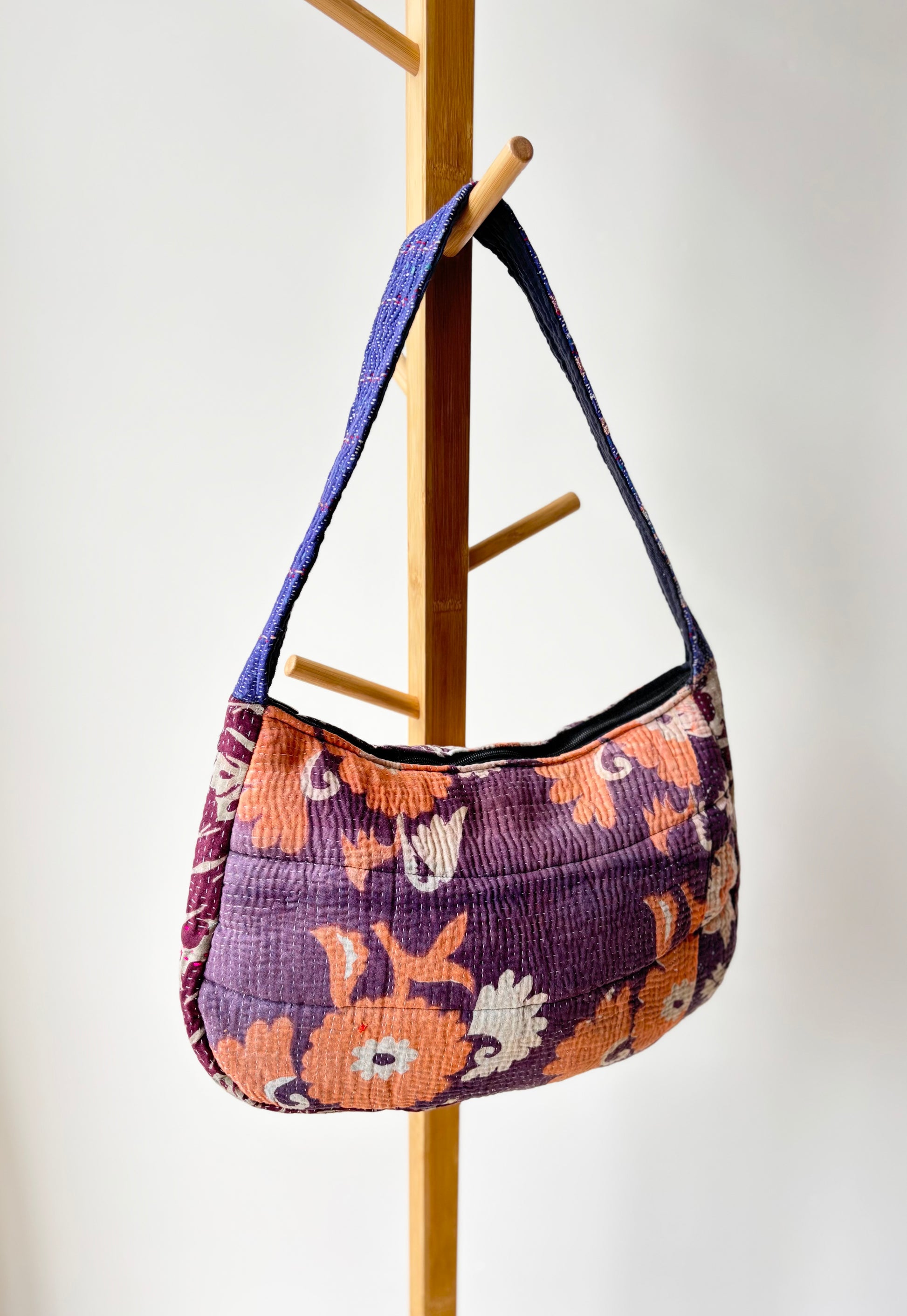 Deze kantha cross body tas is met veel liefde handgemaakt in India. Kantha stoffen bestaan uit verschillende lagen stof die op elkaar zijn vast gemaakt. Deze prachtige tas is gemaakt van vintage kantha stof. Op deze manier worden de stoffen hergebruikt en krijgen ze een heel nieuw leven (helemaal duurzaam dus)! Het kan dus zijn dat er wat versleten plekjes zichtbaar zijn. Dit hoort bij de tas en daaronder zit een nieuwe laag stof.