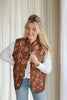Dit prachtige giletje is handgemaakt in India. Met een prachtige print en zakken aan zowel de buiten als de binnenkant kun je hem dragen aan twee kanten. Dit giletje is gemaakt van vintage zijden sari's daarom kunnen de giletjes wat verschillen kwa print, omdat er steeds andere stukjes rest stof worden gebruikt.