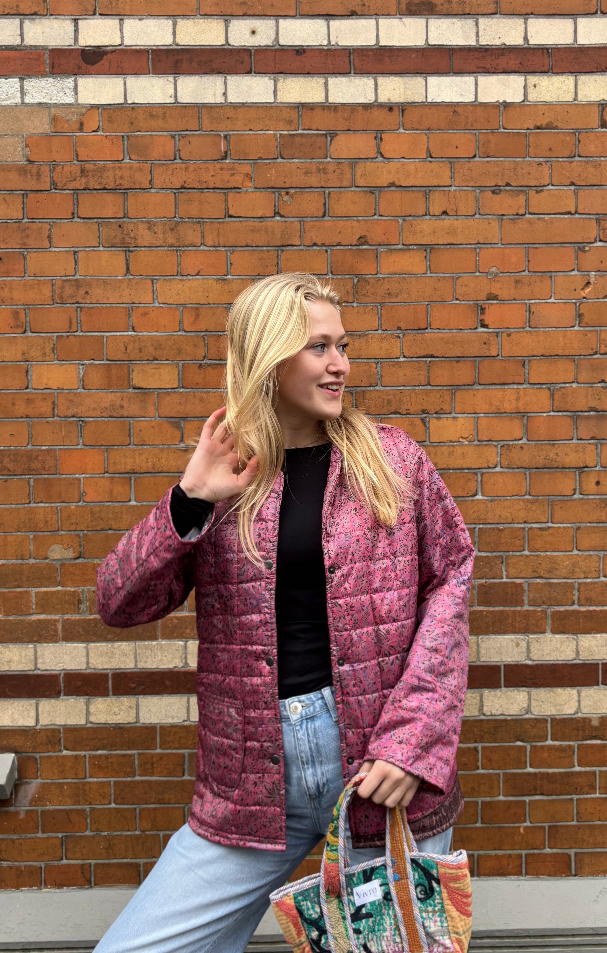 Deze prachtige jas is met handgemaakt in India. De jas is gemaakt van Sari stoffen. Deze stoffen zijn van 100% zijde. De stoffen hebben prachtige details en patronen.